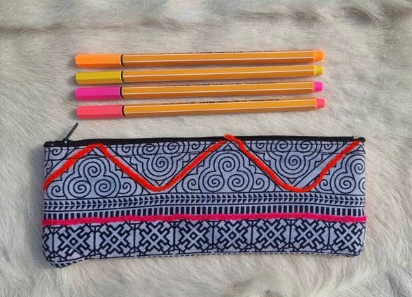 Super vrolijk etui voor in je (school)tas of op je bureau. De voorkant is geborduurd en de achterkant heeft een mooi stofje.