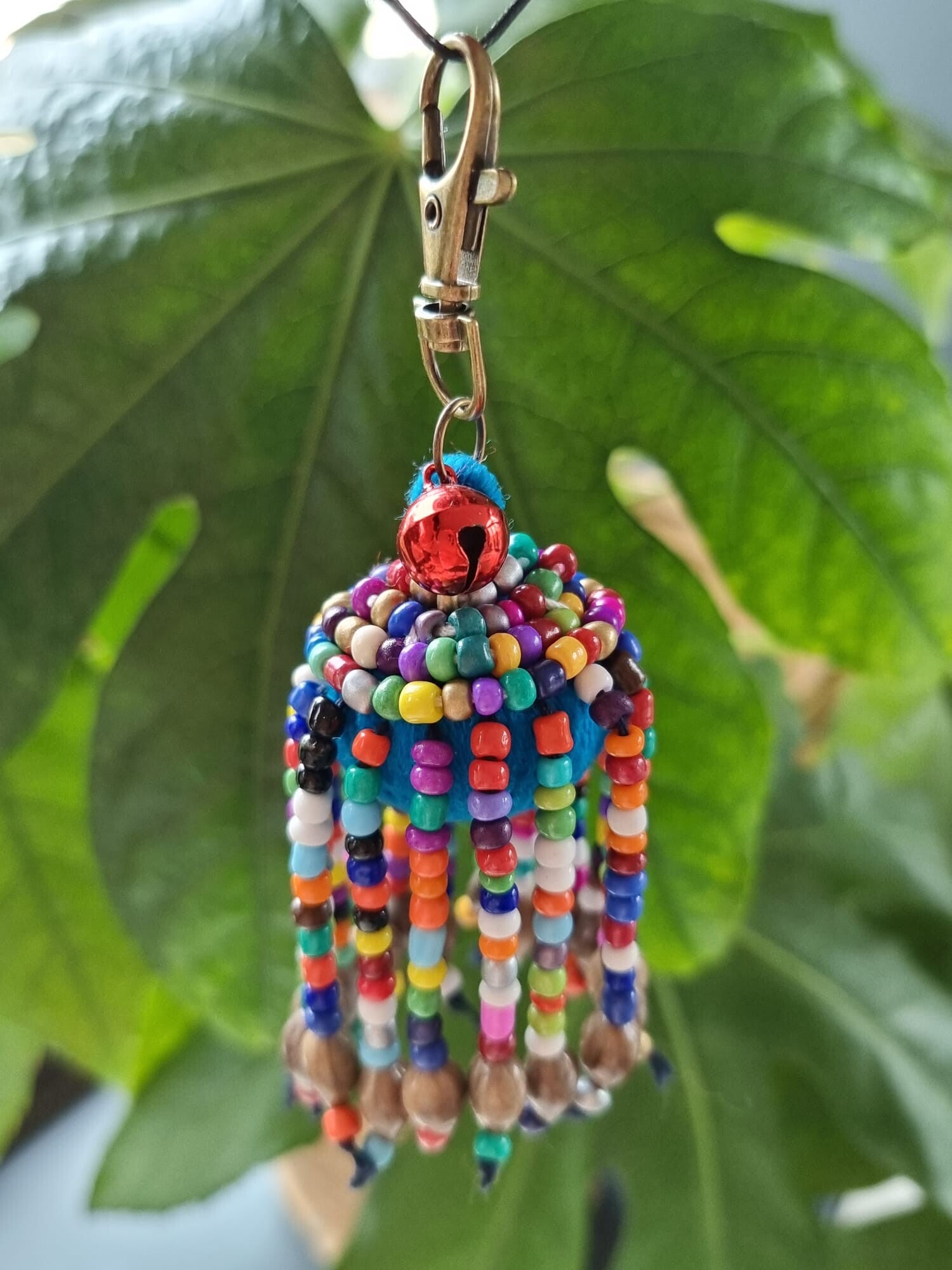 Te gekke kleurrijke hanger. Een feestje voor aan je tas of sleutelbos!