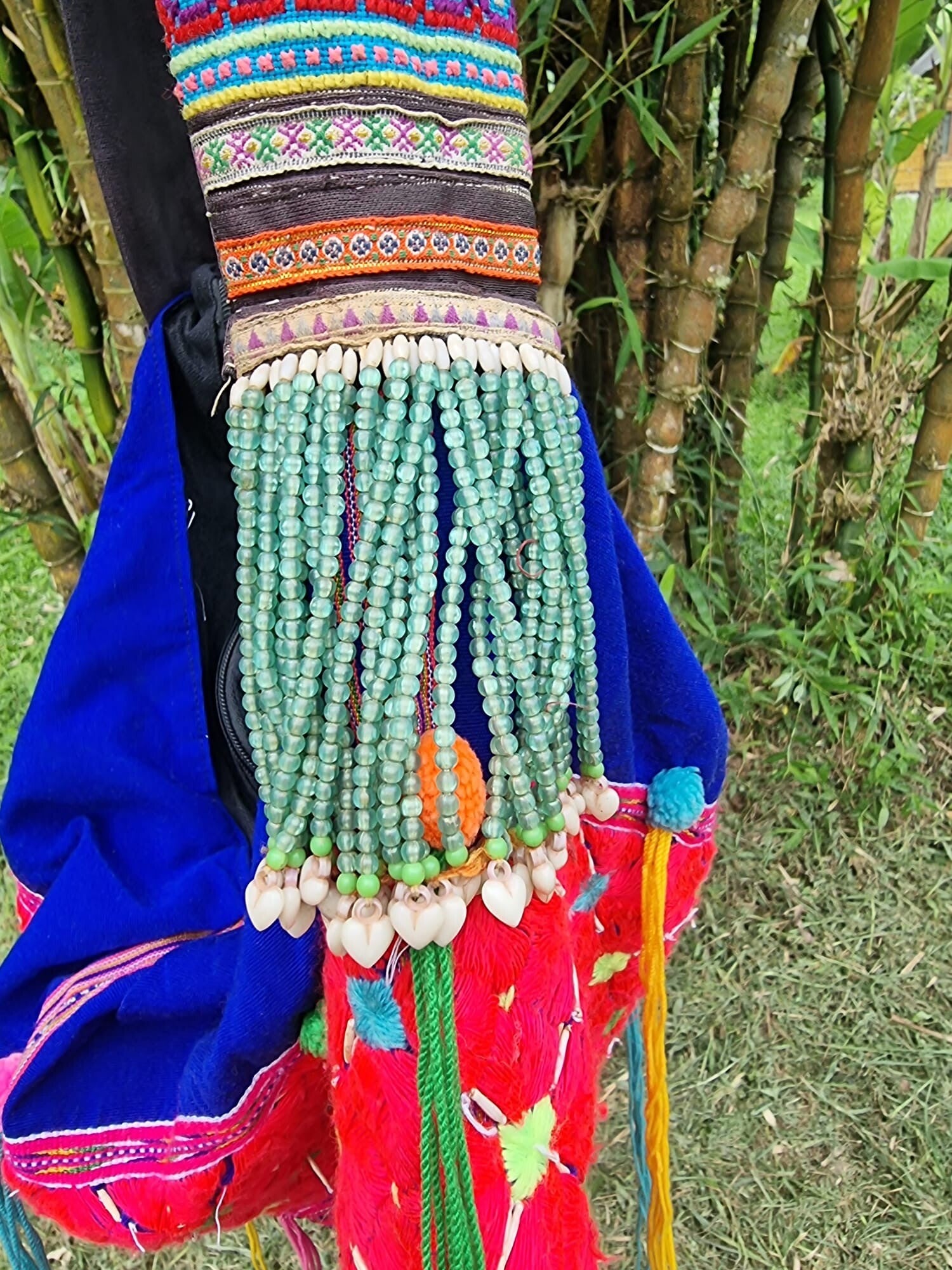 De tas is 40x58 cm en heeft een geborduurde schouderband, mooie details en franjes, een rits en aan de binnenkant zit nog een klein vakje.