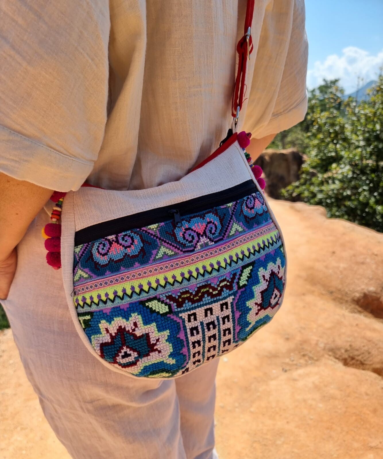 Tante Troela tasje crème blauw