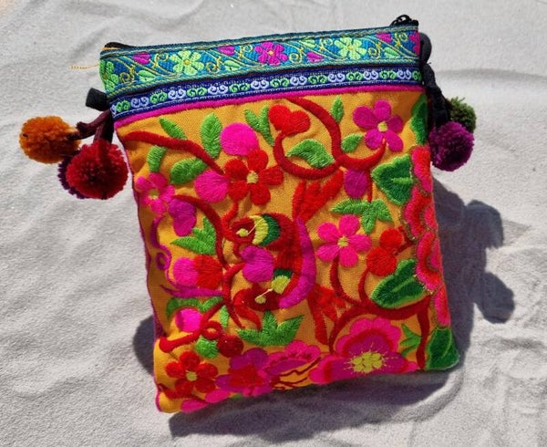 Heerlijk tasje met felle kleuren met lang koord zodat je het tasje op vele manieren kunt dragen.