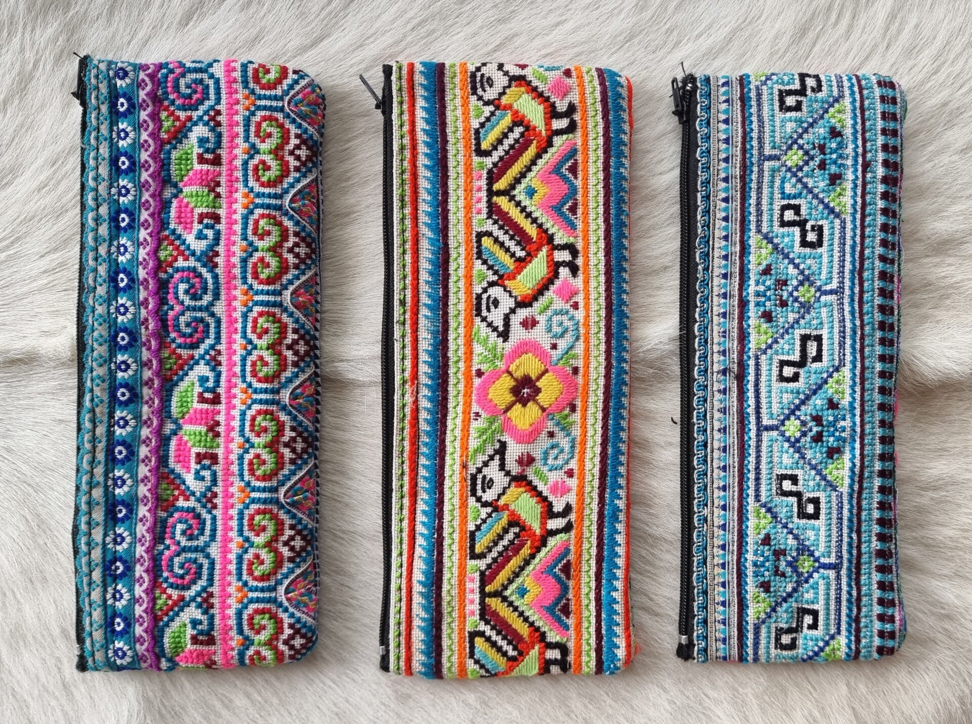 Hangeborduurde pennenetui met rits