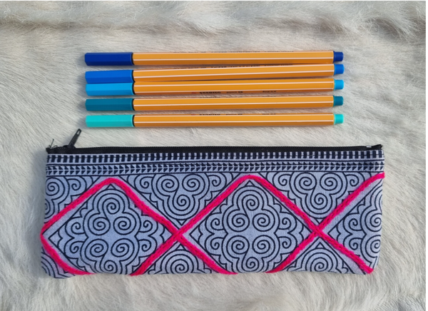 Deze prachtige handgemaakte én handgeborduurde etui is een échte eye-catcher voor op je bureau.