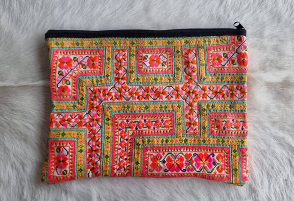 Etui voor je Ipad in vrolijk geel en roze. Het etui heeft een stevige rits. Dit fijne, grote formaat is ook geschikt voor lekker veel andere spullen.